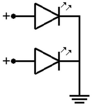 A dual color LED is composed of two LEDs each emitting a different color of light. Two types of dual color LEDs can be found: common anode and common cathode.